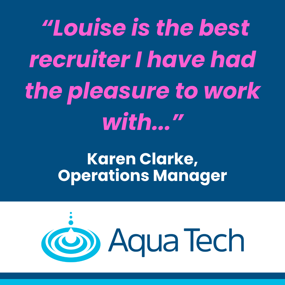 “I’m so glad we appointed Aqua Tech exclusively to recruit this unique project. Because of their industry understanding they pitched it just right, and we were astounded by the calibre of candidates who just wanted to be involved in this ‘once in a lifetime’ project.”